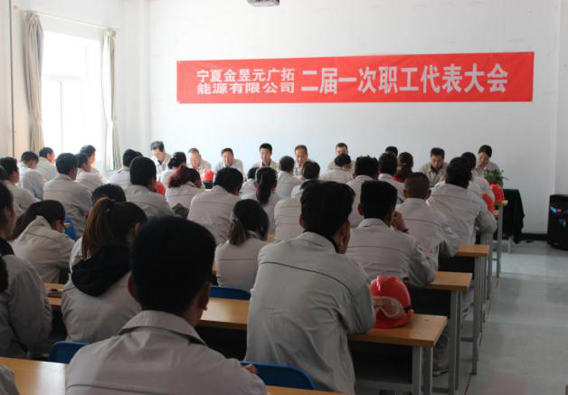 2018年10月16日下午14時(shí),寧夏金昱元廣拓能源公司二屆一次職工代表大會(huì)在化工公司調(diào)度室召開(kāi)。會(huì)議由黨總支書(shū)記副總經(jīng)理馬建東主持。集團(tuán)公司黨委副書(shū)記、工會(huì)主席王立軍及各子公司、職能部室職工代表共108人參加了會(huì)議。