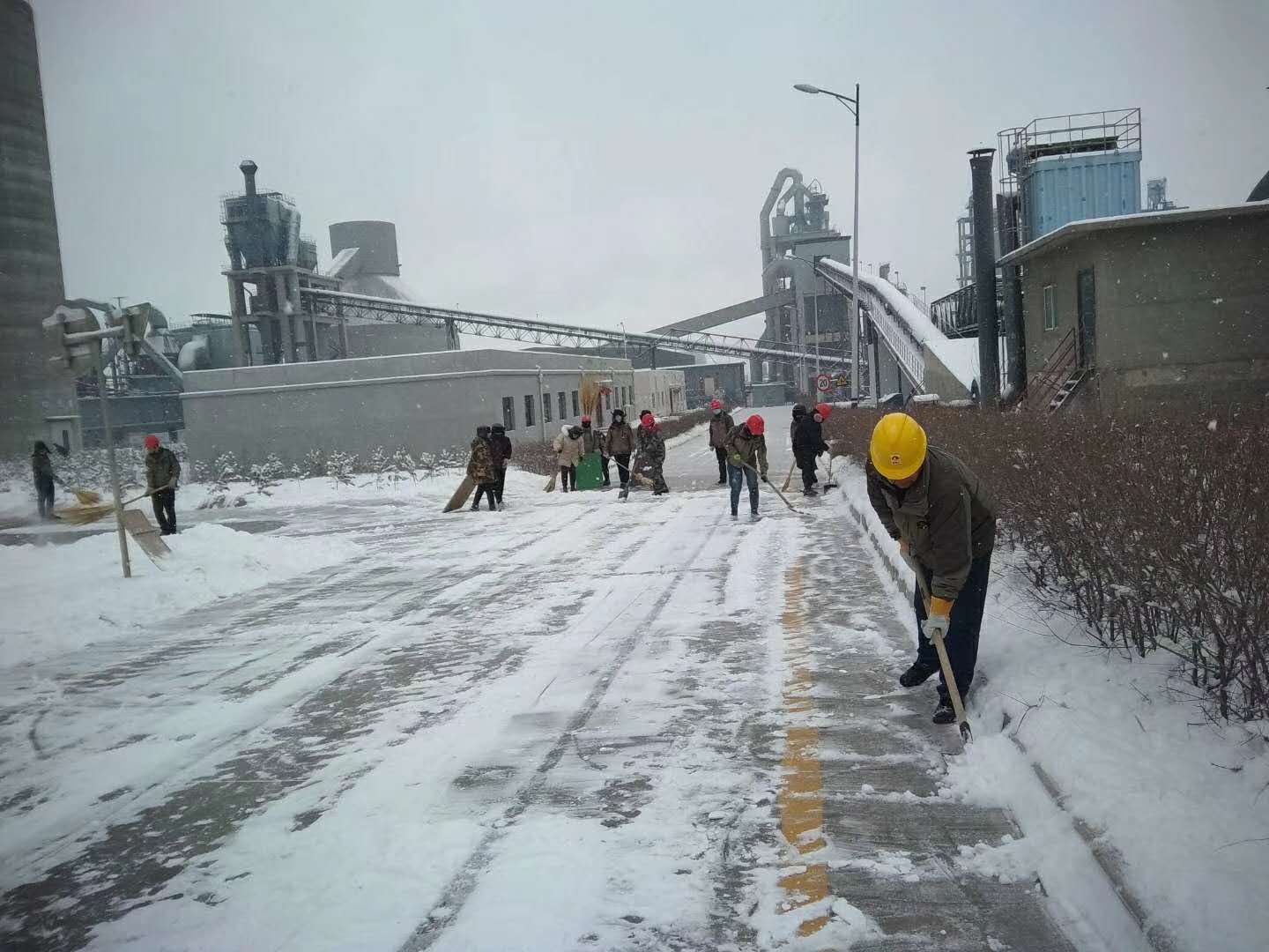 2月16日,迎來(lái)了2019年第一場(chǎng)茫茫大雪,讓整個(gè)廠區(qū)銀裝素裹,畫面甚美,但是由于降雪冰凍,廠區(qū)設(shè)備、運(yùn)輸路面、辦公區(qū)域的積雪,給公司的生產(chǎn)運(yùn)行和員工出行帶來(lái)了極大的安全隱患,為及時(shí)消除因積雪而存在的安全隱患,確保廠區(qū)道路安全暢通,17日早上,公司組織全體員工開(kāi)展積雪清掃工作。