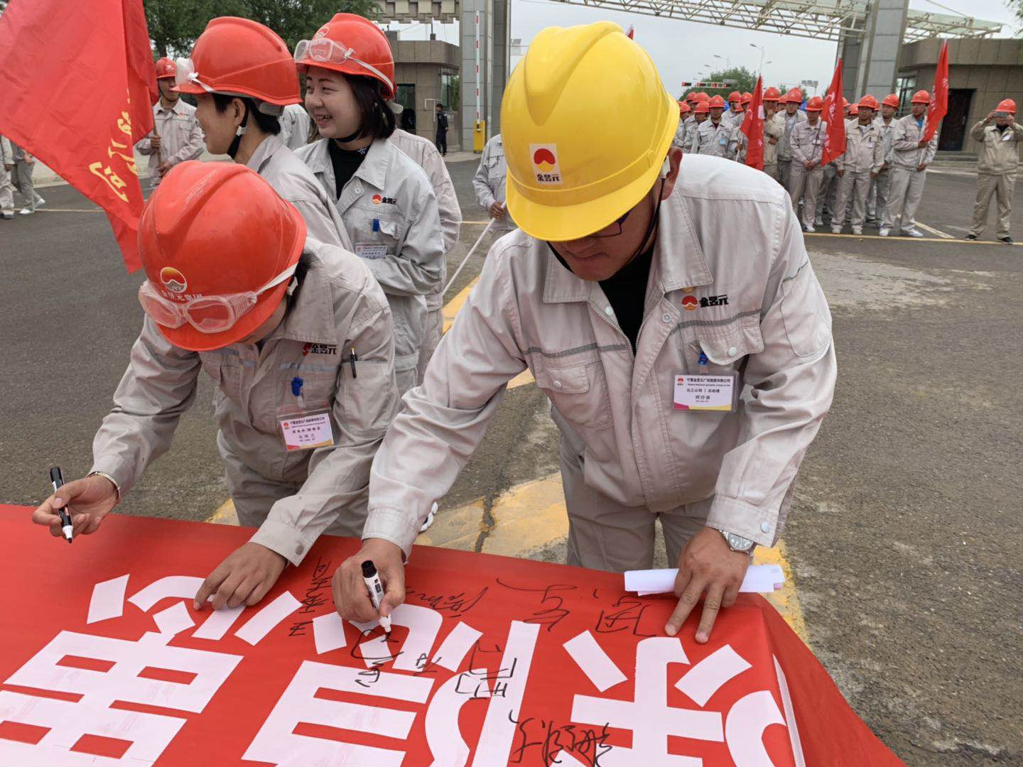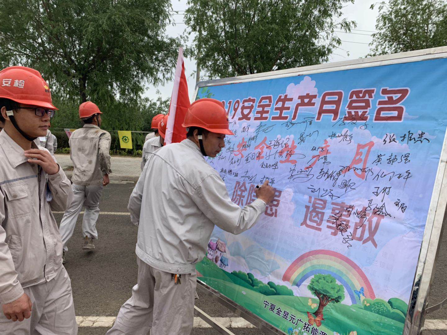 最后,開展了安全簽名活動,全體干部職工在“防風險、除隱患、遏事故”的橫幅上鄭重地簽下了自己的名字,表達了對開展好安全月活動的信心和實現安全生產目標的決心。