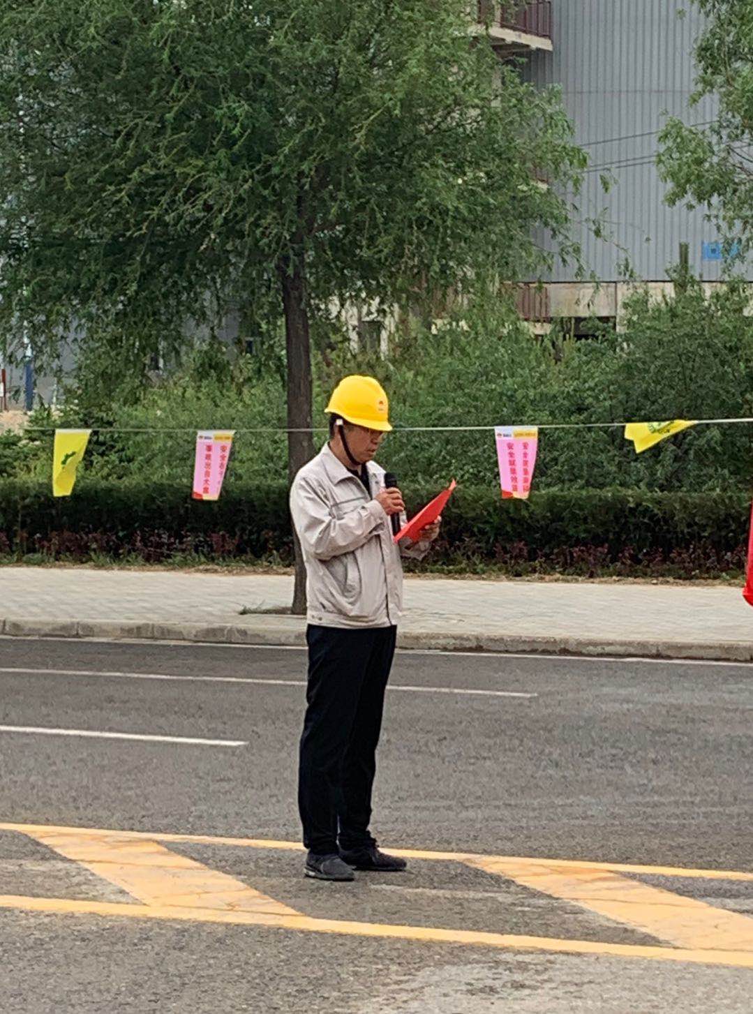 安全生產月活動儀式啟動首先進行了升國旗儀式,伴隨著莊嚴的國歌聲,五星紅旗冉冉升起。片區(qū)總經理喬冠榮作安全生產月動員講話。