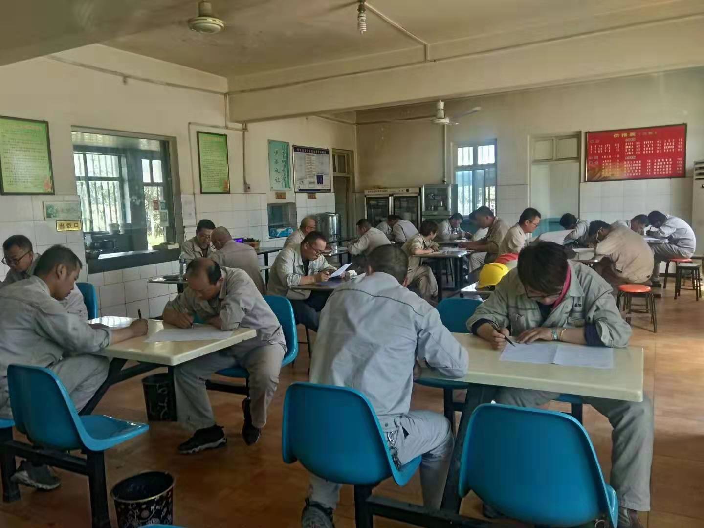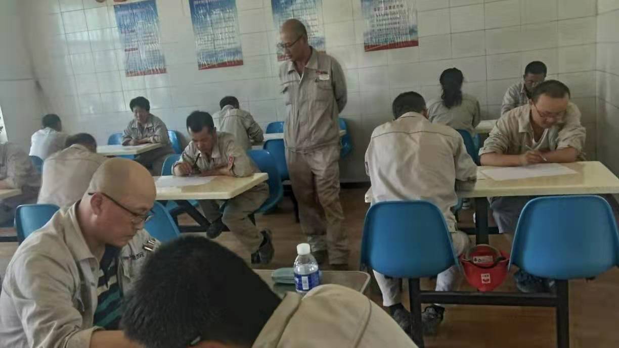 考試分為兩場進行,考場分別設在公司餐廳及會議室,此次考試以近期培訓的《危害生產安全刑事案件兩高司法解釋》、《危險性作業(yè)管理要求》、《電石、水泥系統(tǒng)較大風險作業(yè)安全管控措施》及管理人員應知應會知識為主,考試分為A、B卷組織進行,現(xiàn)場為避免抄襲現(xiàn)象,組織將手機集中保管,分離對坐。
