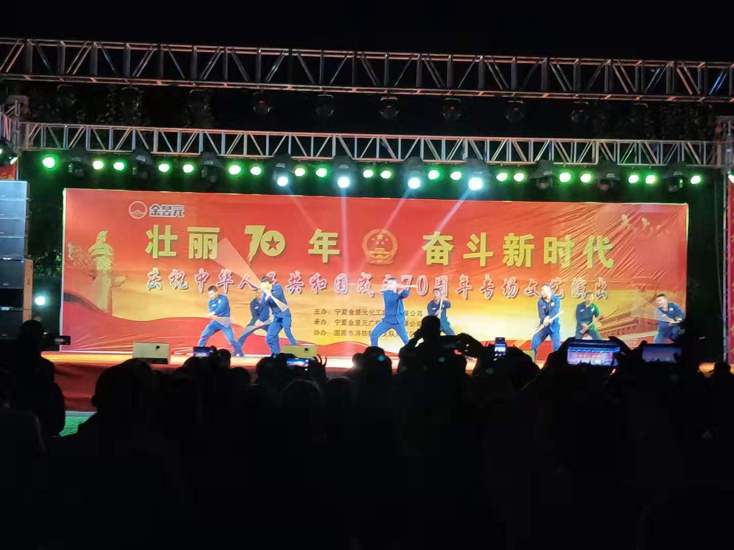 在新中國成立70周年來臨之際,寧夏金昱元化工集團(tuán)舉辦此次文藝匯演活動,不僅為廣大群眾奉獻(xiàn)了一場精彩的視聽盛宴,表達(dá)了各族人民對黨和祖國的熱愛和美好祝愿,更激發(fā)了大家愛國愛黨的熱情,增強了各級群眾的凝聚力、向心力。我們滿懷赤子之心,向祖國獻(xiàn)禮,用歌聲祝福祖國繁榮昌盛,祝福明天的中國更加美好!