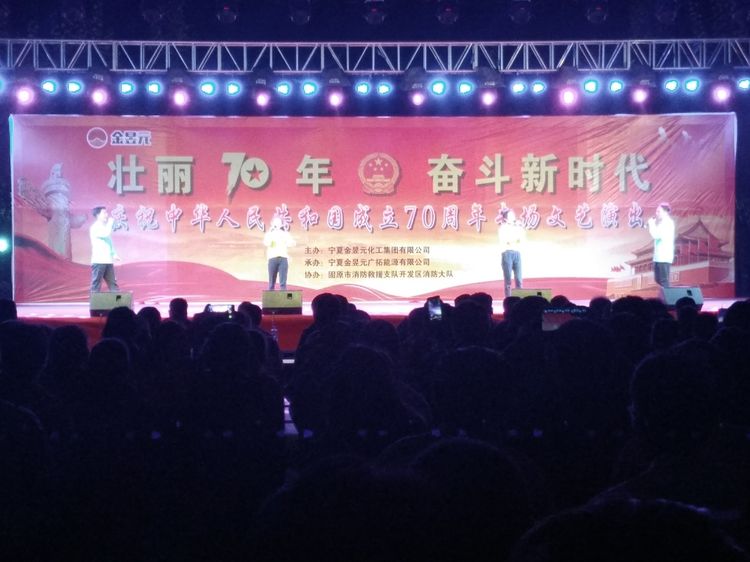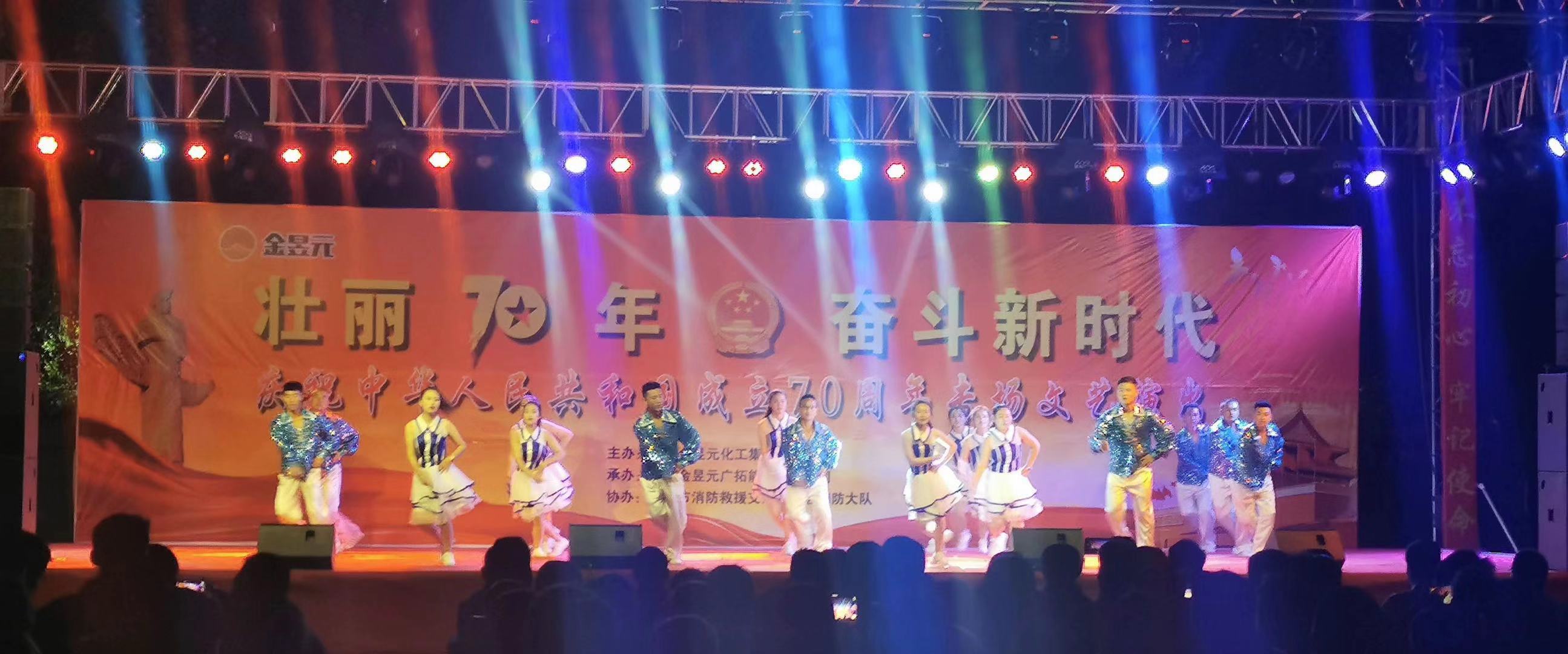 為慶祝新中國成立70周年,寧夏金昱元化工集團(tuán)攜手固原市開發(fā)區(qū)消防大隊舉辦了以“壯麗70年,奮斗新時代”為主題的文藝匯演晚會,2019年9月26日晚,文藝匯演來到固原片區(qū),固原經(jīng)濟開發(fā)區(qū)管委會,固原市工信局,固原市消防救援支隊開發(fā)區(qū)消防大隊,集團(tuán)公司、固原片區(qū)相關(guān)領(lǐng)導(dǎo)以及各子公司職工代表,外協(xié)單位共計400余人觀看了本次文藝匯演活動。