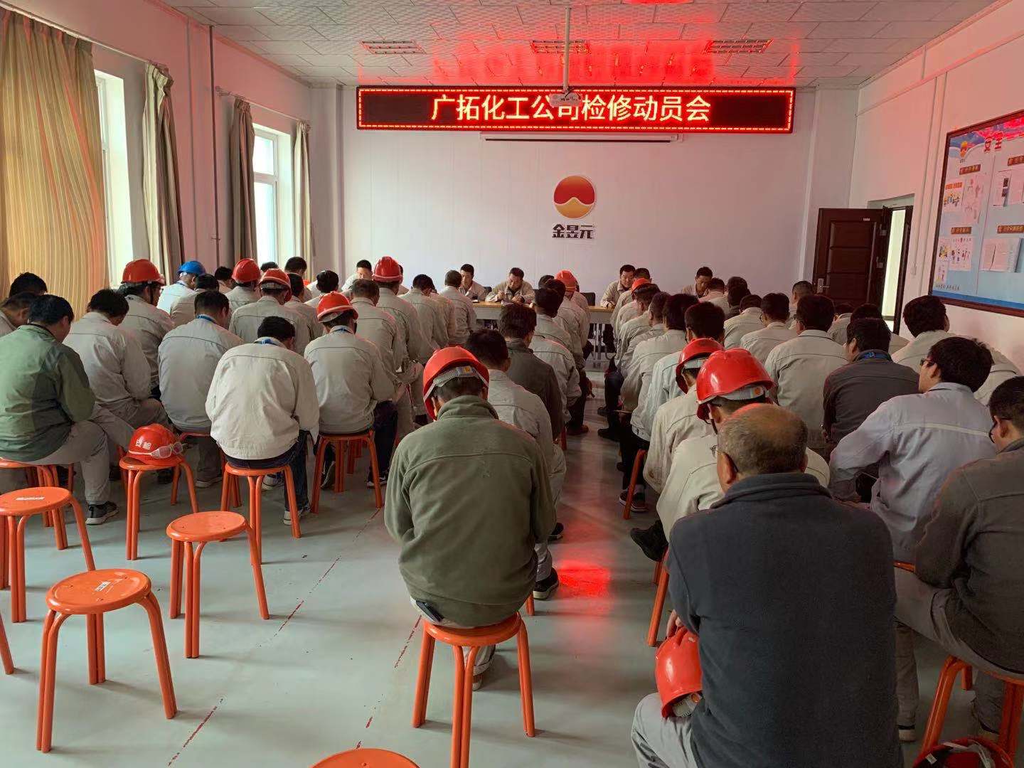 2019年10月22日至25日,廣拓化工公司為期四天的檢修已拉開序幕,21日下午公司組織召開技術(shù)員及以上管理人員檢修前的動員大會。