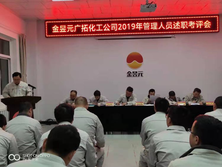 2019年11月19日—20日,廣拓化工公司利用下班時間組織召開了2019年度管理人員述職考評會,會議由興昊黨支部副書記王志杰主持,化工公司總經(jīng)理,副總經(jīng)理,安全總監(jiān),副總工程師出席,32名述職人員及110名職工代表參加。