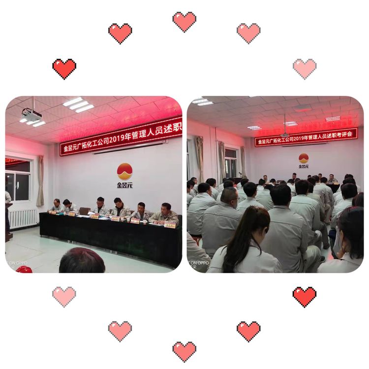 述職考評結(jié)束后,化工公司總經(jīng)理賈存富講話,希望全體化工人員以認(rèn)真、誠懇的態(tài)度分析自己的工作,并要求大家繼續(xù)保持艱苦奮斗,精誠團結(jié)的作風(fēng),繼續(xù)發(fā)揚過去工作中的優(yōu)點,汲取經(jīng)驗,摒棄不足,滿懷信心,以更清醒的頭腦,更旺盛的斗志向2020年的既定目標(biāo)前進。