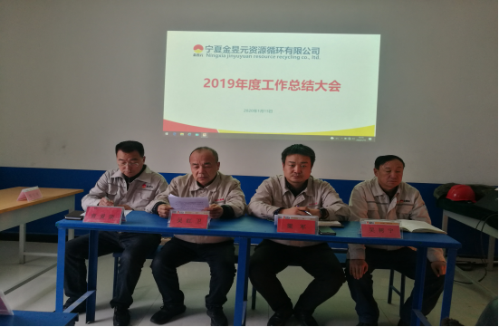 20201月15日下午,寧夏金昱元資源循環(huán)有限公司勝利召開了2019年度工作總結(jié)及2020年生產(chǎn)經(jīng)營、安全環(huán)保目標(biāo)責(zé)任書簽訂大會。會議由公司副總經(jīng)理梁軍主持,各單位技術(shù)員以上管理人員及職工代表共55人參加。