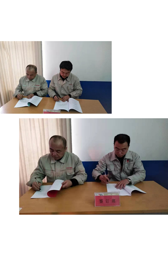 副總經(jīng)理梁軍與安環(huán)生產(chǎn)科、成品裝置和調(diào)度室負(fù)責(zé)人簽訂2020年生產(chǎn)經(jīng)營管理目標(biāo)責(zé)任書