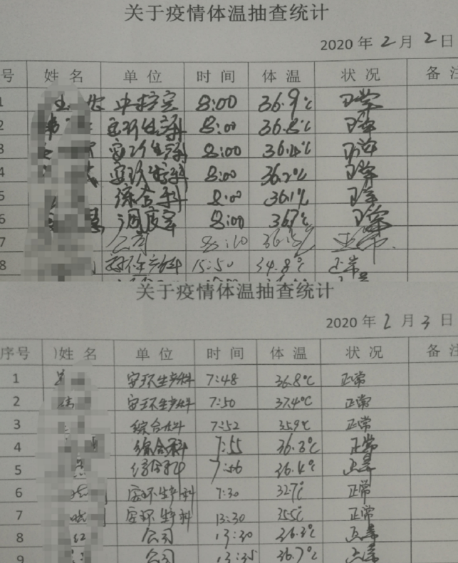 對已隔離人員密切關注,每天進行詢問其狀態(tài)和體溫進行登記。