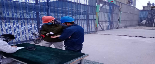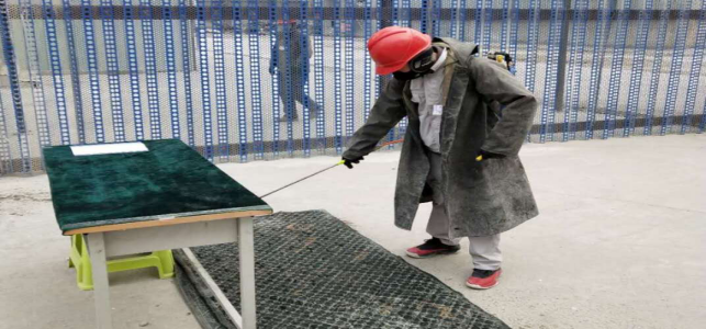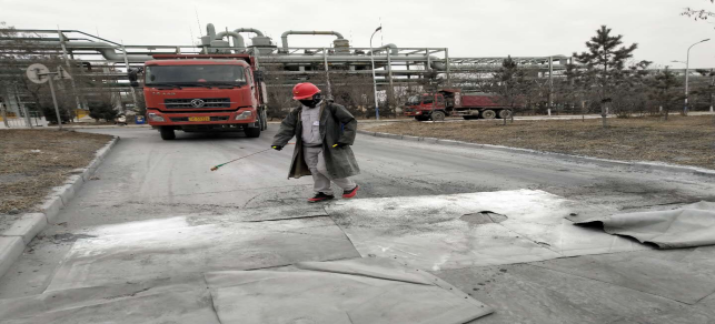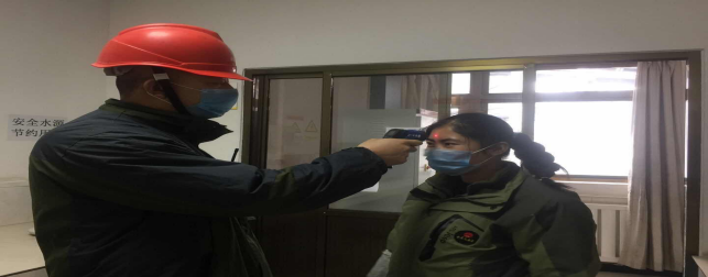 在公司北大門,檢查登記、消毒,做好進出廠區(qū)人員及車輛登記,全力進行“疫情”防控工作。