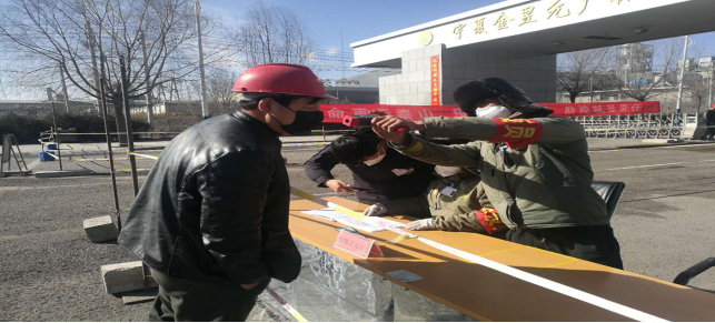 在南門,面對進(jìn)出的車輛及人員,他們檢測、消毒、登記同步進(jìn)行。園區(qū)里他們戰(zhàn)“疫”用擔(dān)當(dāng)換來大家的平安。當(dāng)日,他們共登記檢測 人(車輛)信息,體溫均在正常范圍。
