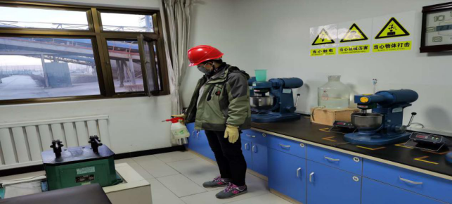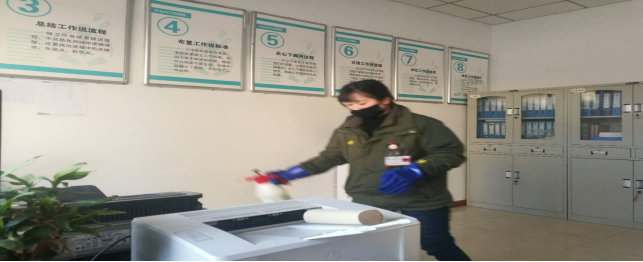 擦拭操作臺、門把手,進(jìn)行衛(wèi)生消毒,工作的有條不紊。