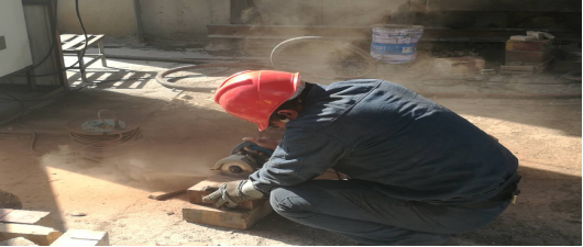 2月19日早上8點(diǎn)動(dòng)工挖補(bǔ),到當(dāng)日下午19:18回轉(zhuǎn)窯點(diǎn)火升溫,全體管理人員、成品裝置維修工人以及回轉(zhuǎn)窯系統(tǒng)全體在崗工人,在進(jìn)入檢修作業(yè)狀態(tài)的那一刻起,一會(huì)兒走入窯內(nèi),熱氣撲面,嚴(yán)肅、緊張的計(jì)算和規(guī)劃,一會(huì)兒生產(chǎn)科科長(zhǎng)張振忠、成品裝置裝置長(zhǎng)帶頭掄動(dòng)著鐵錘,工友們或蹲著、或扶著支架,每個(gè)人都在揮汗如雨的忙碌著,淺綠色、白色工服上斑斑點(diǎn)點(diǎn)不一的顏色見證著他們流下的每一滴汗水。