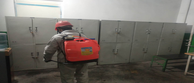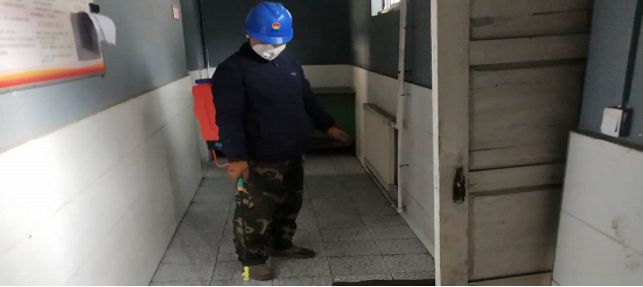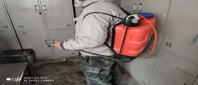 對廠區(qū)衛(wèi)生間消毒。