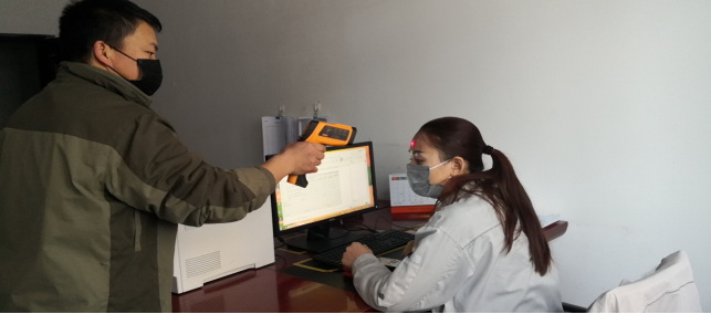 在園區(qū)南門,今日截止下午17時(shí)整,他們檢測(cè)、消毒、登記車輛78輛,人員100人,車輛正常,人員體溫均在正常范圍。
