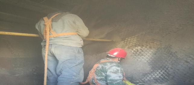 4月27日,此次回轉(zhuǎn)窯檢修已經(jīng)迎來了最后的沖刺階段。工作中最頻繁,最臟的,最累的工作任務(wù)莫過于回轉(zhuǎn)窯大齒輪更換機(jī)油及校正工作。