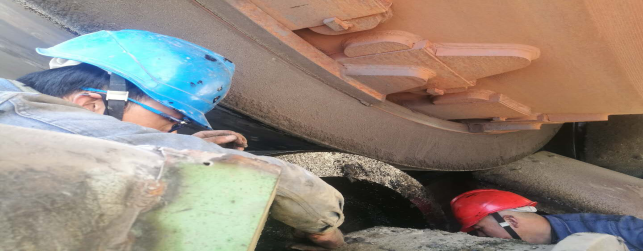 (3)回轉窯輪帶擋圈及墊板補焊加固,檢查大齒圈齒面磨損并對齒面打磨修復(完成);