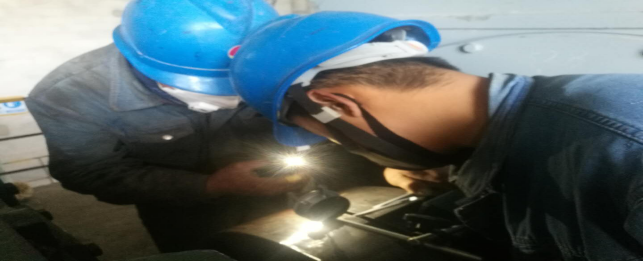 在檢修期間,他們充分發(fā)揚了嚴謹認真,精益求精的工作作風,為了徹底解決設備存在的癥結,他們擠進狹小的空間,補焊、切割。這樣你追我趕地干著。累了就稍作休息,渴了就喝口涼水。胳膊振酸了,手掌磨麻了,可工作的熱情卻仍高漲。在經過全體努力,每一個設備逐漸恢復了暫新原貌。