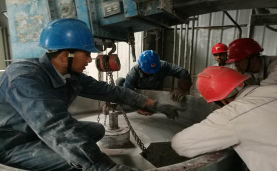 根據(jù)檢修計劃安排,此次檢修9月9日開始,9月23日結(jié)束,計劃工期15天。計劃完成檢修標(biāo)準(zhǔn)項目81項,新增18項。參與本次檢修的外協(xié)單位共3家,主要有更換窯磚、窯頭密封改造、輥壓機柱釘輥更換、更換預(yù)熱器掛片、烘干破管道更換及防腐處理、鎖風(fēng)下料器更換等檢修內(nèi)容。