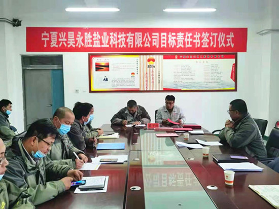 2021 年 1 月 7 日 15:30,寧夏興昊永勝鹽業(yè)科技有限公司召開了2021年首次安委會(huì)擴(kuò)大會(huì)議暨安全生產(chǎn)目標(biāo)責(zé)任書簽訂儀式。會(huì)議由公司總經(jīng)理主持,公司安委會(huì)全體成員及技術(shù)員以上人員參加了本次會(huì)議。