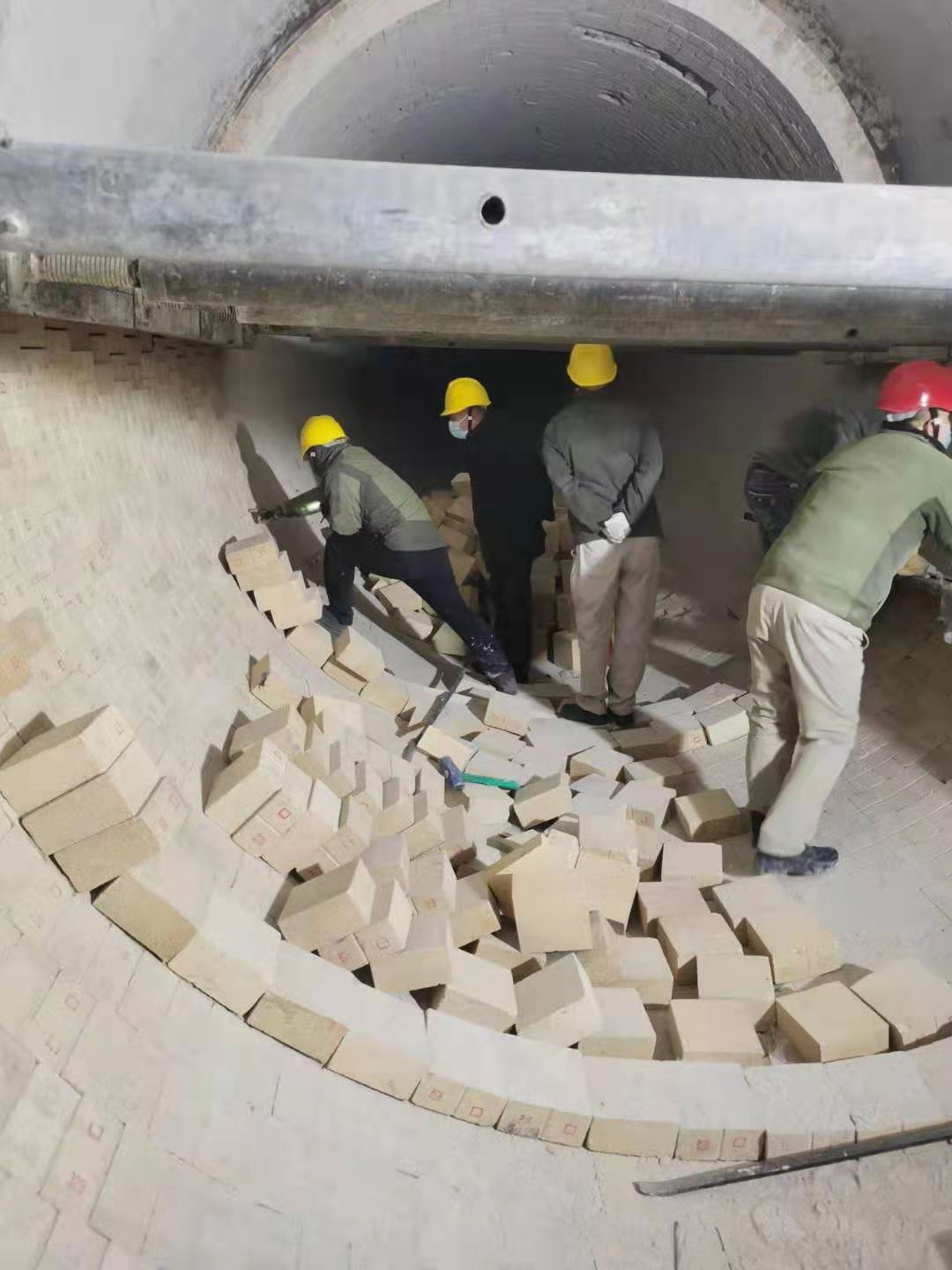 入窯鉸刀更換結(jié)束后,幾名維修工再一次細(xì)致的對(duì)鉸刀附屬設(shè)備進(jìn)行檢查,確;剞D(zhuǎn)窯開啟后入窯鉸刀能夠長周期穩(wěn)定運(yùn)行。回轉(zhuǎn)窯內(nèi),平時(shí)的崗位巡檢操作工變身砌磚師傅,對(duì)窯磚進(jìn)行砌筑。大家配合默契,像極了從事砌磚行業(yè)多年的老師傅。窯頭平臺(tái)上,頂著寒風(fēng)搬磚的是各裝置協(xié)調(diào)的員工。一方有難八方支援,不管回轉(zhuǎn)窯還是電石爐,都是資源再生公司的設(shè)備。哪兒檢修,其他裝置馬上協(xié)調(diào)人員配合。一次檢修就是一次考驗(yàn),不僅要保安全保進(jìn)度,還要保證檢修質(zhì)量。各級(jí)管理人員在保證安全的前提下對(duì)窯磚砌筑質(zhì)量進(jìn)行檢查,確保檢修質(zhì)量。