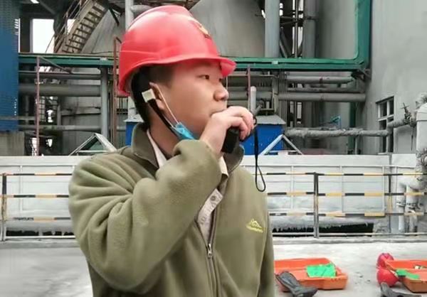 隨著現(xiàn)場總指一聲令下,應(yīng)急救援演練正式開始。巡檢人員徐強在巡檢時發(fā)現(xiàn)脫硫氨水罐區(qū)發(fā)生氨水泄露,現(xiàn)場氨味較大,申請啟動氨水泄露事故“應(yīng)急預(yù)案”。情況被迅速層層上報;副經(jīng)理莊濤指示啟動應(yīng)急處理預(yù)案:“確認(rèn)現(xiàn)場有無人員受傷,落實漏點具體位置,組織消漏”。