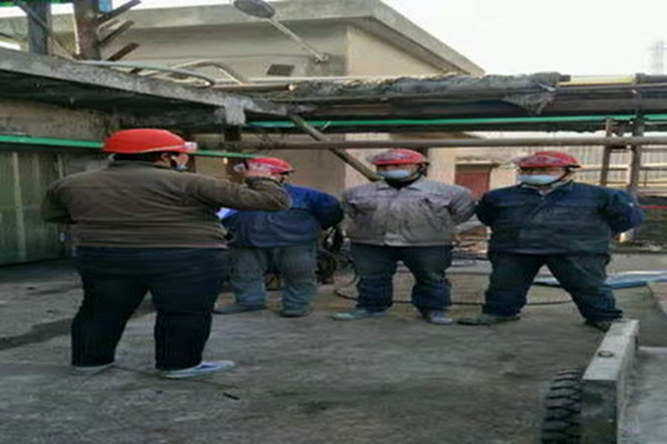 在完成相關(guān)作業(yè)的準(zhǔn)備工作,穿戴好各類防護用品,簽發(fā)了各類票證后,大家就進入到檢修現(xiàn)場。加固冷卻塔前,必須先拆除冷卻塔壁板,清洗冷卻塔填料雜物及易燃易爆物質(zhì)。由于冷卻塔結(jié)構(gòu)腐蝕嚴(yán)重,填料內(nèi)部含易燃易爆物質(zhì)多,所以必須對冷卻塔進行多次沖洗徹底除去易燃易爆物質(zhì)才能進行動火加固作業(yè)。