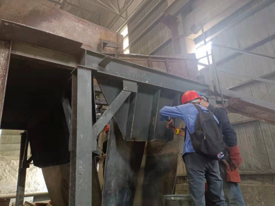 8月9日—11日,在1101皮帶電石渣上料口技改現(xiàn)場,同水泥磨檢修相比,這里由于上料環(huán)境,環(huán)境密閉、空氣不對流,狹小的空間,為了趕進(jìn)度,提高技改質(zhì)量,這讓檢修工人更加需要具有更強(qiáng)的團(tuán)結(jié)協(xié)作精神,他們在技術(shù)員的指揮下,分割、配對、焊接……生產(chǎn)裝置負(fù)責(zé)人丁伏山同志告訴大家:化工目前降負(fù)荷運(yùn)行,大家要咬緊牙關(guān)、克服困難,盡快完成技術(shù)改造項(xiàng)目,盡早投入生產(chǎn)。在現(xiàn)場他是指揮員又是戰(zhàn)斗員,每一個(gè)細(xì)節(jié)他都結(jié)合經(jīng)驗(yàn),進(jìn)一步對現(xiàn)場改造完善再完善,帶領(lǐng)員工經(jīng)得住高溫的“烤驗(yàn)”,經(jīng)得住連續(xù)作戰(zhàn)的勞累,于8月11晚20:30分,嚴(yán)格按工藝流程要求,完成此項(xiàng)技改項(xiàng)目,控制了下料的均勻性和連續(xù)性,確保了烘干破系統(tǒng)溫度和配料的穩(wěn)定性。