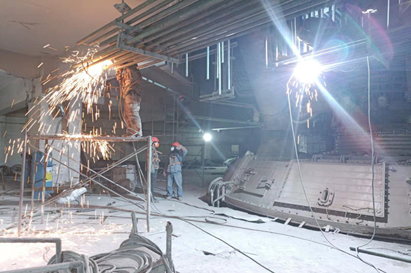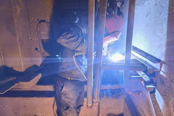在檢修現(xiàn)場,我們的檢修工人身系安全帶,手拿焊鉗,蹲在狹小的空間,焊接水管,耗時耗力,唯有飛濺如麥穗的焊花展現(xiàn)著他們的顏色,魚骨似的焊縫是他們驕傲的成果。同時在檢修過程中也伴隨著灰塵飛揚和各種安全隱患,但在我們檢修工人的臉上沒有看見沮喪的表情,看到的是檢修工人汗水浸透的后背,沒有休憩,只有投入;看到的是檢修工人一張張布滿灰塵的臉頰,沒有怨言,只有投入。在這里你可以看到那一個個無比堅毅的目光,感受到他們內(nèi)心滿滿的自信和他們愛崗敬業(yè)、無私奉獻、不畏艱辛的精神;他們攜手共進、分工合理、工作有序,只為創(chuàng)造安全的檢修環(huán)境;他們?yōu)樘崆巴瓿蓹z修任務加班到深夜,工作時間長、工作量大,不辭辛勞,沒有任何怨言,充分展現(xiàn)了“團結(jié)、拼搏”的企業(yè)精神。