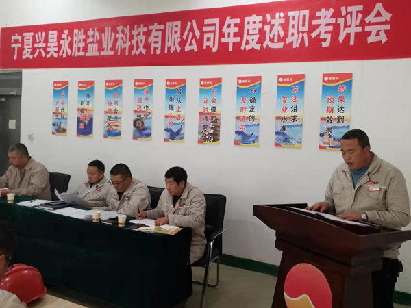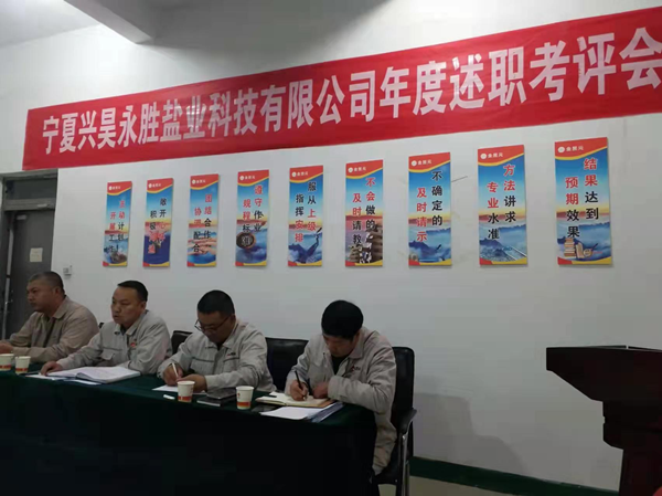 2021年12月2日下午,寧夏興昊永勝鹽業(yè)科技有限公司組織召開(kāi)2021年度管理人員述職考評(píng)會(huì)聽(tīng)取管理人員履職情況、管理目標(biāo)重點(diǎn)工作完成情況、分管工作本人履職中存在問(wèn)題及下一年的工作思路。
