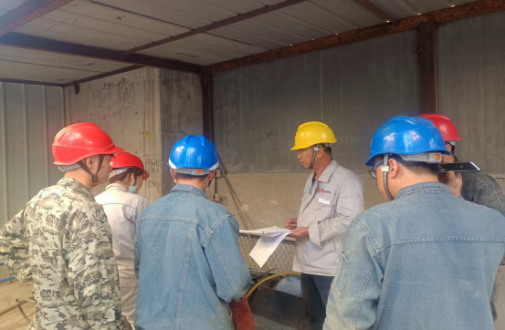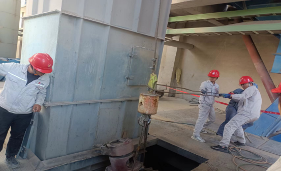 更換生料1909提升機(jī)鏈條和料斗現(xiàn)場:他們無懼“烤”驗(yàn) ,“汗”衛(wèi)設(shè)備有效運(yùn)行。檢修中,他們手持焊槍,用一片赤忱,“汗”衛(wèi)設(shè)備長周期穩(wěn)定運(yùn)行,在太陽曝曬下,設(shè)備溫度已達(dá)40℃左右,有限高溫作業(yè),一會兒焊接,一會兒切割,一會兒又是安裝……他們堅(jiān)守一道道安全之門,即使皮膚曬得黝黑,汗水濕透衣衫,依然為的是安全生產(chǎn)穩(wěn)定保駕護(hù)航!