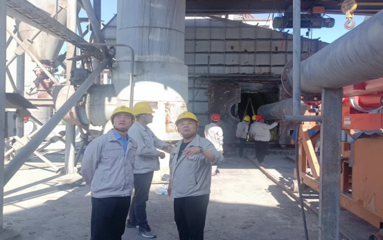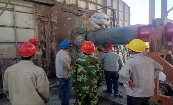 最繁忙、最艱苦的時(shí)段,從上午6:00分至下午17:20分,他們頂酷暑堅(jiān)守在挖補(bǔ)窯磚、更換噴煤管的一線現(xiàn)場。烈日下,有的實(shí)施清理挖補(bǔ)窯磚、有的丈量計(jì)算、有的指揮進(jìn)行吊裝、有的進(jìn)行切割、焊接……