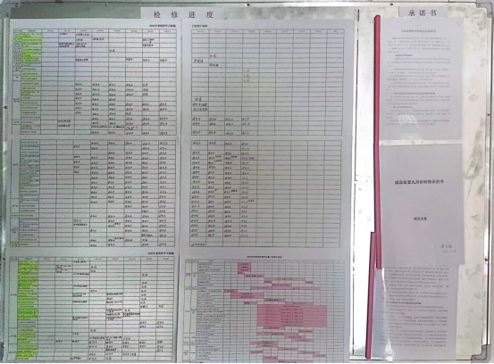 回轉(zhuǎn)窯、預(yù)熱器、烘干破高精選、1903提升機(jī)檢修是公司的檢修主線,從裝置停車到順利交付檢修后,再到單車試車,為保持工作“書面化”交流,抓好現(xiàn)場“痕跡化”管理,安環(huán)生產(chǎn)科每日嚴(yán)把檢修進(jìn)度和質(zhì)量,按照裝置原始開車要求,對(duì)單機(jī)試車等所有開工條件進(jìn)行檢查,對(duì)現(xiàn)場反復(fù)進(jìn)行確認(rèn)。所有項(xiàng)目實(shí)行專人管理,表格上墻,逐臺(tái)設(shè)備,逐條管線,逐個(gè)閥門進(jìn)行細(xì)致檢查,對(duì)發(fā)現(xiàn)的問題認(rèn)真記錄,落實(shí)整改負(fù)責(zé)人及時(shí)整改。