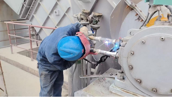 隨著一聲清脆的哨響,檢修工作正式拉開帷幕。焊工老李戴著防護(hù)面罩,手持焊槍,在水泥磨的縫隙間穿梭;」忾W爍,焊花飛濺,如同一朵朵金色的煙花在黑暗中綻放,他全神貫注地修補(bǔ)著磨體上的裂痕,每一個(gè)焊點(diǎn)都凝結(jié)著他的精湛技藝;鉗工師傅們則圍著球磨機(jī),像一群經(jīng)驗(yàn)豐富的“外科醫(yī)生”,小心翼翼地拆卸下磨損的部件。扳手與螺栓碰撞發(fā)出的叮當(dāng)聲,與拆卸設(shè)備時(shí)的摩擦聲交織在一起,奏響了一曲獨(dú)特的工業(yè)樂章。