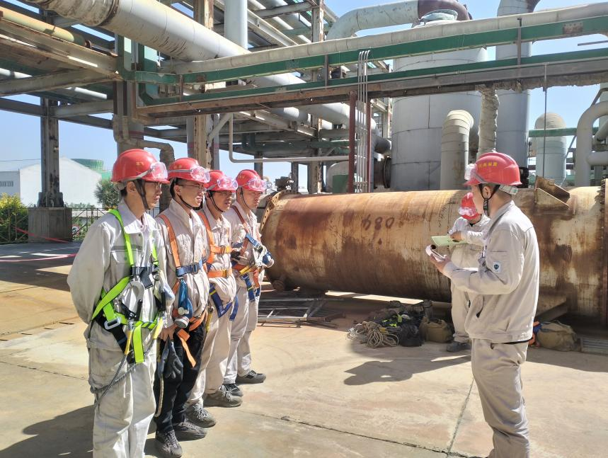 8點(diǎn)整,我們背上工具包一起出發(fā)。第一站是氯化氫裝置生產(chǎn)區(qū)。剛靠近設(shè)備,刺鼻的氣味就撲面而來(lái),我們熟練地戴上防毒口罩,徑直走向壓力表,查看每一塊壓力表的數(shù)值是否準(zhǔn)確,表盤衛(wèi)生是否干凈,是否在有效檢定期內(nèi),有無(wú)泄漏。接著我們開始巡查現(xiàn)場(chǎng)的閥門及各類儀表的運(yùn)行狀態(tài),是否穩(wěn)定運(yùn)行,有無(wú)跑冒滴漏。9點(diǎn)30分,兩人趕到一次鹽水系統(tǒng)。這里的化鹽池pH計(jì)顯示值只有8,低于工藝要求。老王走到pH計(jì)探頭旁,發(fā)現(xiàn)探頭表面附著一層白色污垢!斑@是鹽水垢,會(huì)影響測(cè)量精度!彼┐骱梅雷o(hù)用品,用專用清洗劑清洗探頭,清洗探頭要輕柔,不能刮傷探頭,不然就廢了。清洗完畢后,他重新安裝探頭,等待數(shù)值穩(wěn)定:“現(xiàn)在pH值9.8,合格了”,老王一邊記錄數(shù)據(jù),一邊給我們講解:“這個(gè)PH計(jì)探頭容易結(jié)垢,這個(gè)儀表是關(guān)鍵設(shè)備必須時(shí)刻精準(zhǔn)”。
