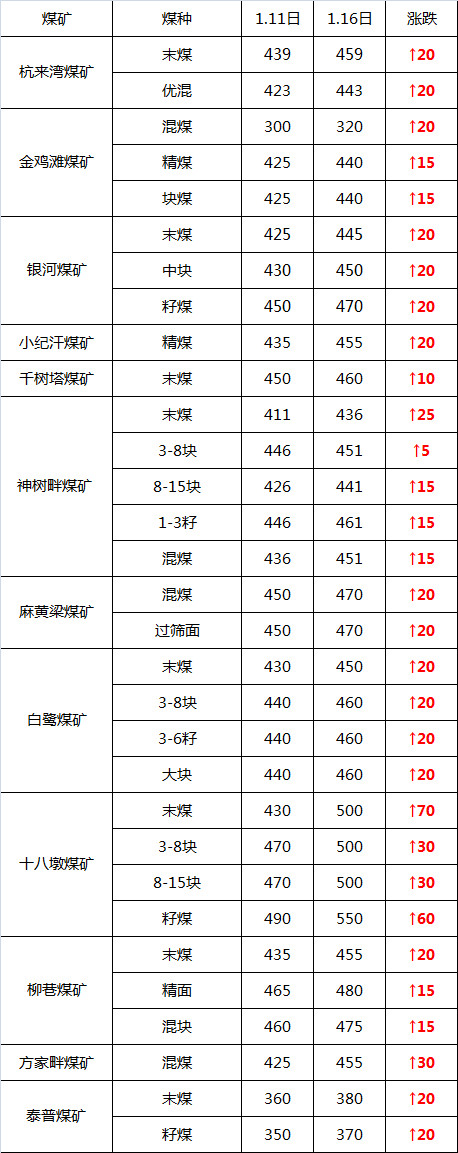 據(jù)榆林煤炭交易中心數(shù)據(jù)統(tǒng)計,與1月11日相比,目前榆林的在產(chǎn)煤礦價格漲幅最高達(dá)到了70元/噸。