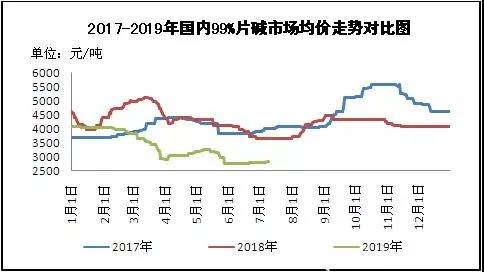 圖1 2017-2019年國內(nèi)99%片堿市場均價走勢對比圖