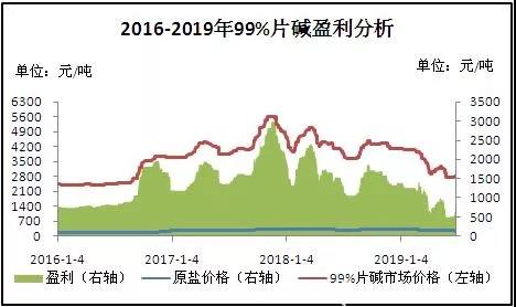 圖4 2016-2019年國內(nèi)99%片堿盈利分析