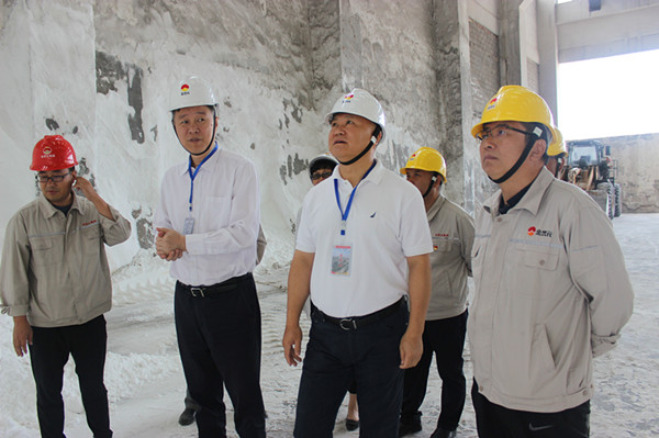 白鴻一行先后到興昊永勝鹽業(yè)公司鹽庫、鹽硝裝置、熱力裝置、企業(yè)文化展廳等地進行實地調(diào)研,并在鹽庫合影留念。