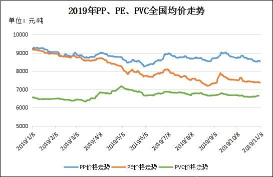 圖3 2019年P(guān)P、PE、PVC全國均價走勢