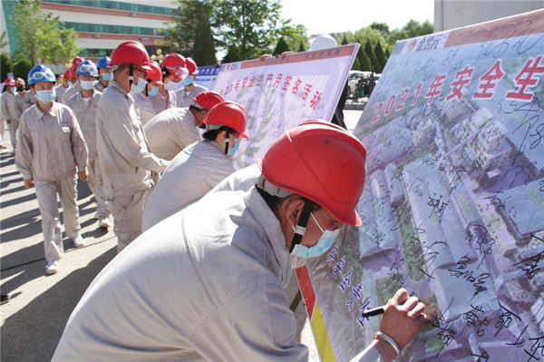 參加活動(dòng)儀式人員在簽字板上鄭重簽下自己的名字,一諾千金,擲地有聲。他們將恪守承諾,牢固樹(shù)立安全意識(shí),嚴(yán)格遵守集團(tuán)公司各項(xiàng)安全管理規(guī)定,共同維護(hù)企業(yè)安全穩(wěn)定局面。