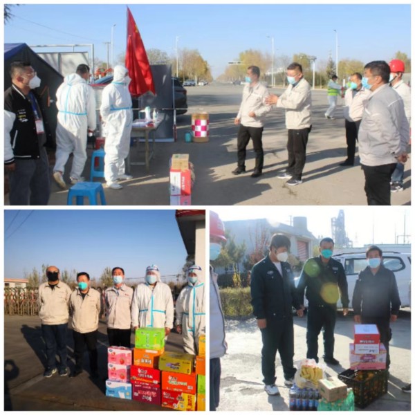 為提振士氣、鼓舞斗志,堅決打贏疫情防控阻擊戰(zhàn),10月31日、11月1日,寧夏金昱元化工集團股份有限公司總裁喬冠榮,監(jiān)事會主席郭復生,黨委副書記尚興,副總裁、固原片區(qū)總經理王立軍,副總裁、青銅峽片區(qū)總經理張立軍等領導組成慰問組,分別到固原片區(qū)和青銅峽片區(qū)各疫情防控卡點慰問奮戰(zhàn)在一線的防疫人員。
