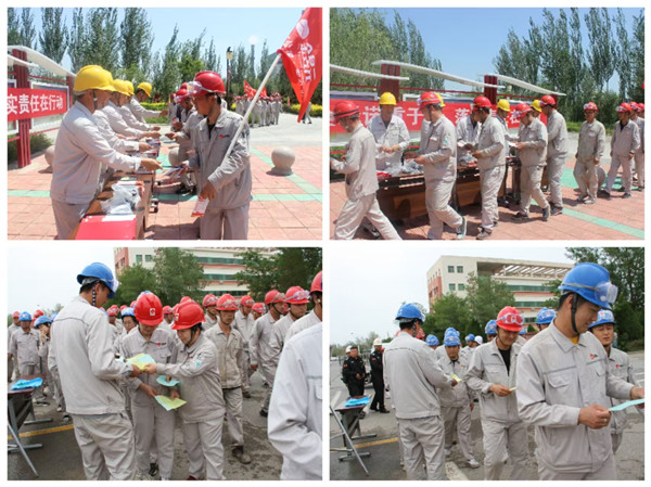 參加啟動(dòng)儀式的員工莊嚴(yán)宣誓:為了公司穩(wěn)步發(fā)展,為了個(gè)人安全健康,為了家庭幸福美滿,忠誠(chéng)企業(yè),恪盡職守,堅(jiān)守紅線,珍愛(ài)生命,創(chuàng)建平安企業(yè);堅(jiān)決做到:牢記安全,遵守紀(jì)律,履行安全職責(zé),不違章、不冒險(xiǎn)、不留隱患、不出事故,以實(shí)際行動(dòng)爭(zhēng)做安全合格員工,確保安全,讓企業(yè)放心,讓家人放心。