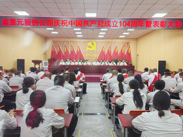 在中國共產(chǎn)黨建黨節(jié)到來之際,6月27日,寧夏金昱元化工集團股份有限公司召開慶祝中國共產(chǎn)黨成立104周年暨表彰大會。