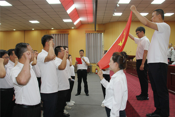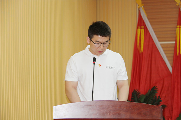 新黨員代表李愛軍作表態(tài)發(fā)言。他號召廣大黨員不忘初心,勇挑重?fù)?dān)、銳意進取,時刻為企業(yè)發(fā)展和國家建設(shè)貢獻智慧與力量。